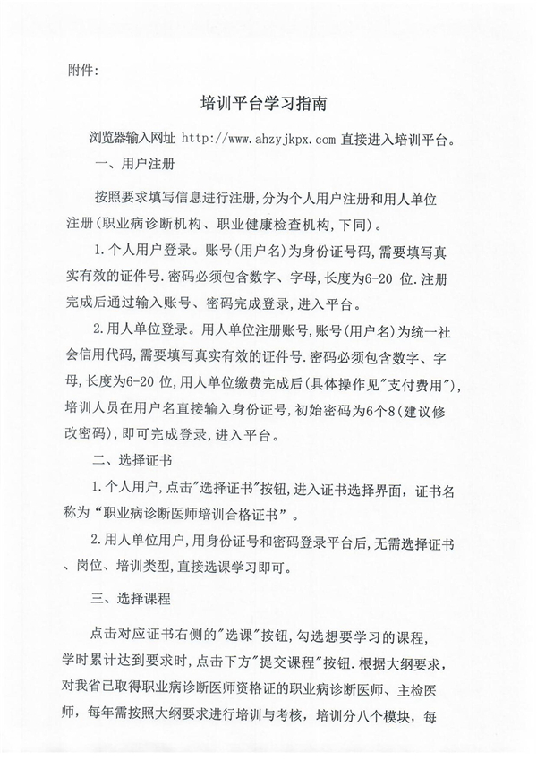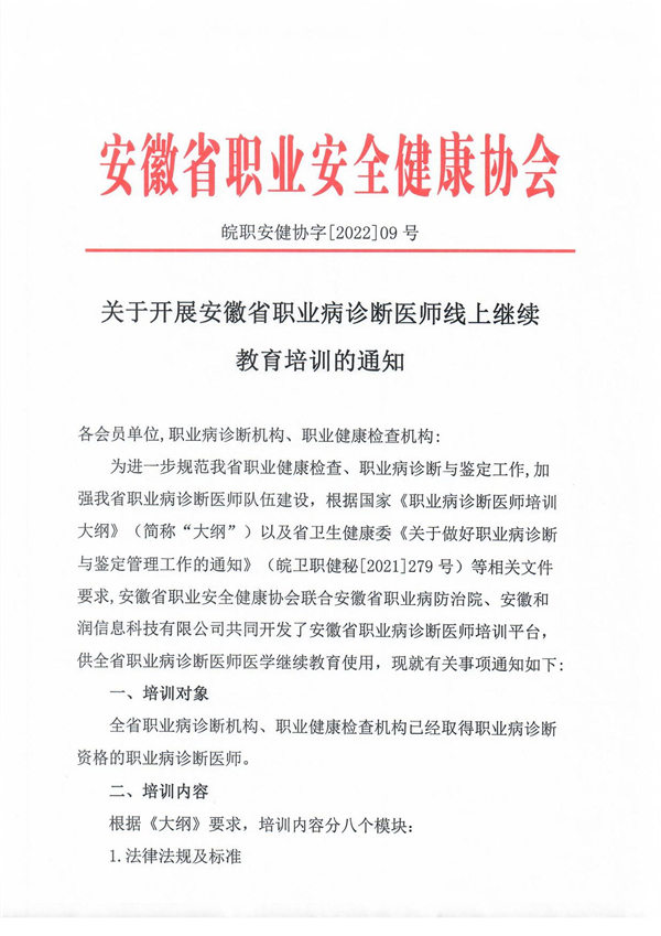 关于安徽省职业病诊断医师培训平台线上培训工作的通知
